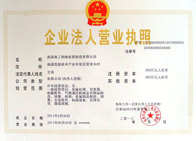 南通海工鋼繩索具制造有限公司坐落在鋼絲繩之鄉(xiāng)——南通,是一家專門提供海洋工程、船舶制造、起重提升用鋼絲繩及索具的生產(chǎn)制造企業(yè)。公司位于江蘇南通高新技術(shù)產(chǎn)業(yè)開發(fā)區(qū),南通蘇通大橋及延邊港口、北鄰滬陜高速、沿海高速,交通便利!